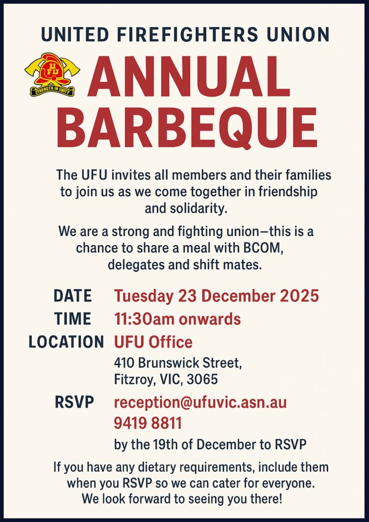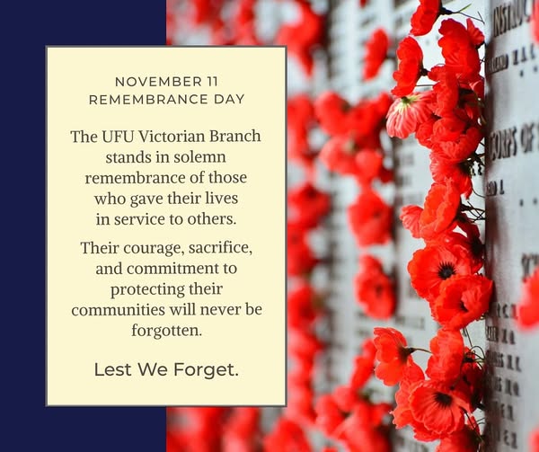 The UFU Victorian Branch represents more the 5,000 members (Current and Past) across Victoria in continuous campaigns to achieve improved working conditions for the men and women who confront dangerous and often life-threatening situations in their daily work and their supporting staff.