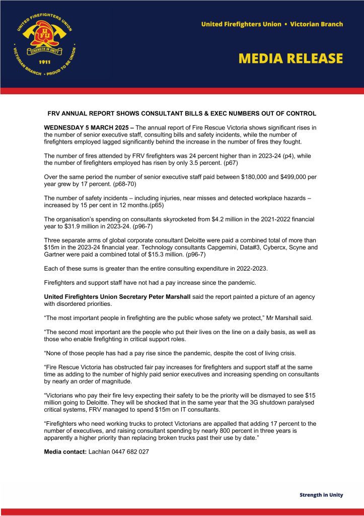 FRV ANNUAL REPORT SHOWS CONSULTANT BILLS & EXEC NUMBERS OUT OF CONTROL – Media Release