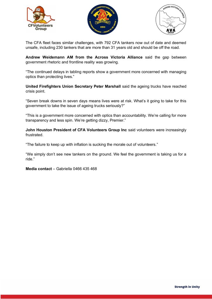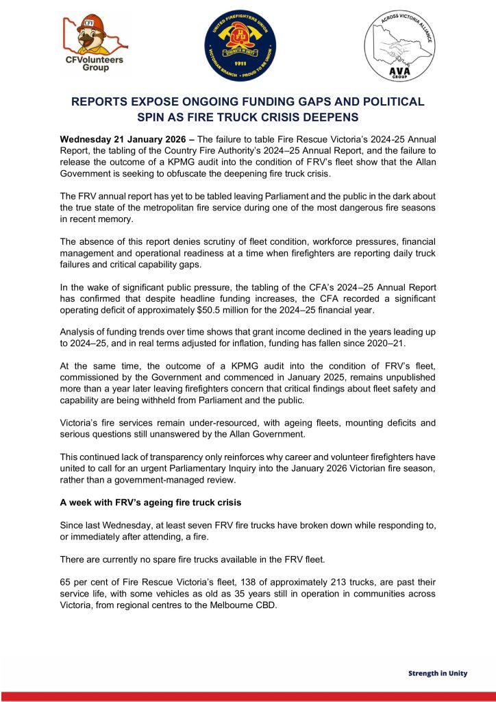 REPORTS EXPOSE ONGOING FUNDING GAPS AND POLITICAL SPIN AS FIRE TRUCK CRISIS DEEPENS