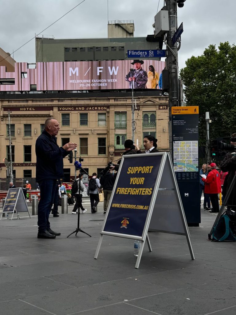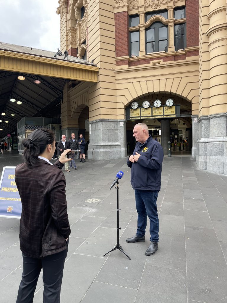 Firefighters have been out and about since 7am this morning at Flinders Street Station main entrance talking to the public about Victoria’s Fire Crisis.