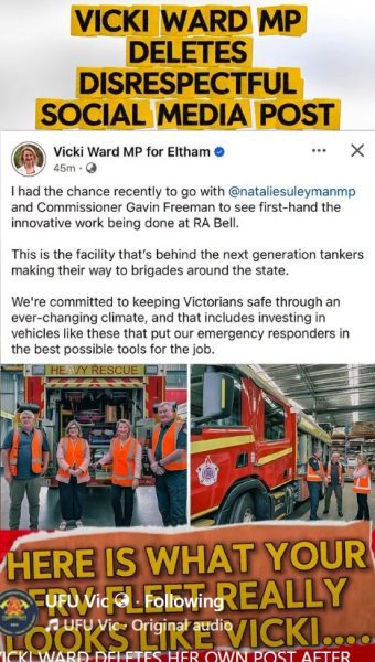 It appears Vicki Ward MP didn’t enjoy firefighters pointing out the truth — her social media post has quietly disappeared after being met with cold, hard facts. This is an ...
