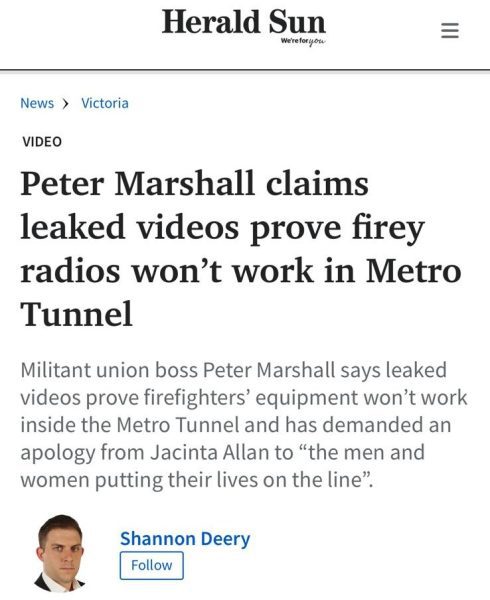 Fire Rescue Victoria radios failed to connect inside the Metro Tunnel. Emails from Telstra say FRV’s setup is missing critical control channels used in the tunnels. Yet the Premier keeps ...