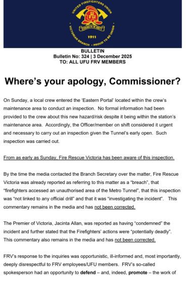 Read the full statement from UFU Victorian Branch Secretary Peter Marshall