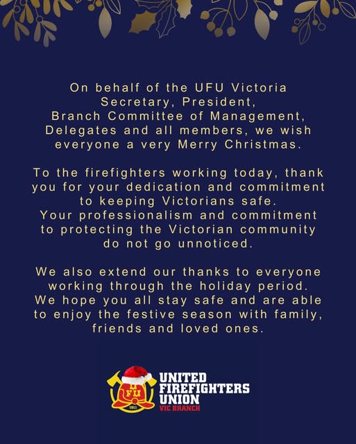 The UFU Victorian Branch represents more the 5,000 members (Current and Past) across Victoria in continuous campaigns to achieve improved working conditions for the men and women who confront dangerous and often life-threatening situations in their daily work and their supporting staff.