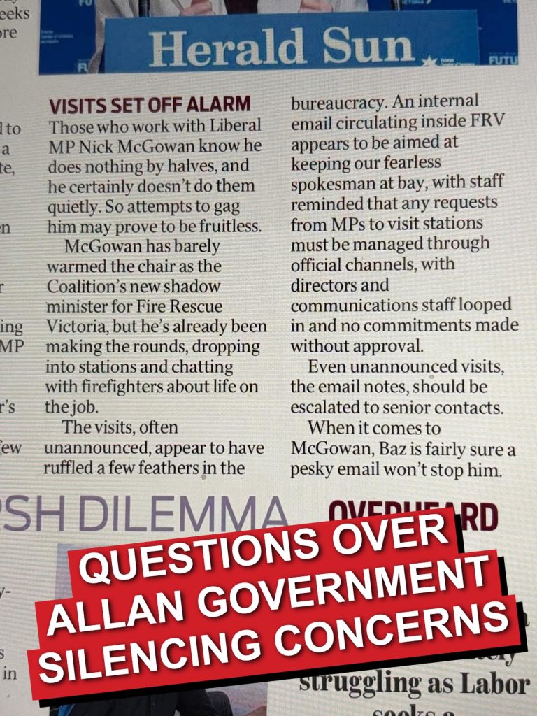 For many in the community, the broader question is about openness. Firefighters play a vital role in protecting Victorian communities, and many people believe it is important that those on the frontline can share their perspectives with elected representatives responsible for oversight and policy.