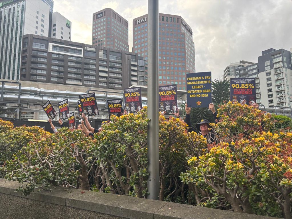 Firefighters are protesting outside tonight’s awards night where failed FRV Commissioner Gavin Freeman is being “honoured” with a Fellowship by the IPAA — an award supposedly reserved for those who “embody excellence” and “represent the very best of ethical leadership and service.”